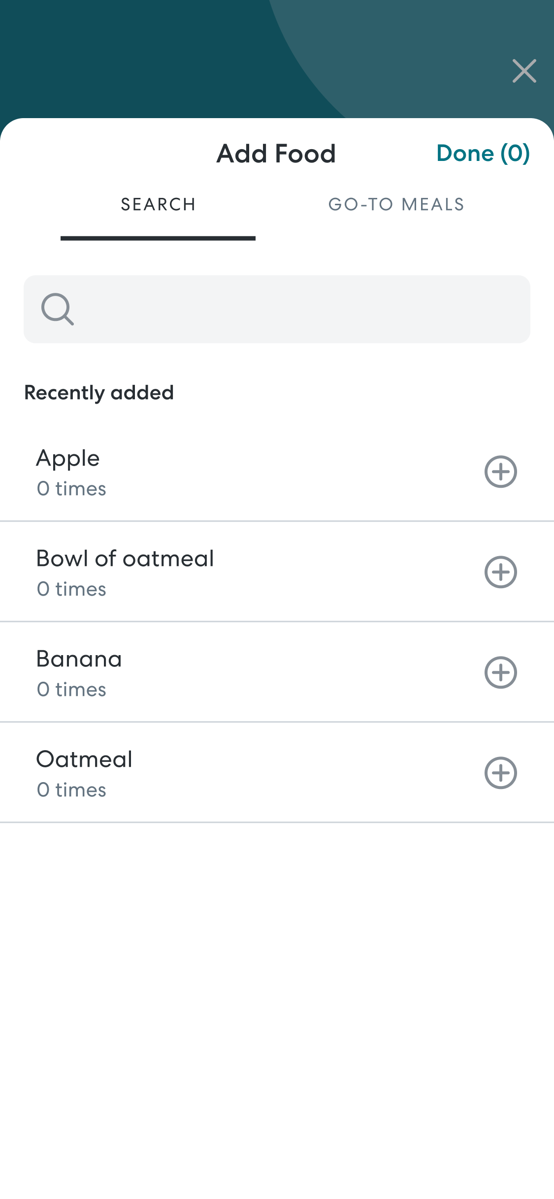 The previous food tracker at Omada leveraged a full page sheet for interactions and had very limited food input options—search through a small database of a couple hundred foods and add a static image.