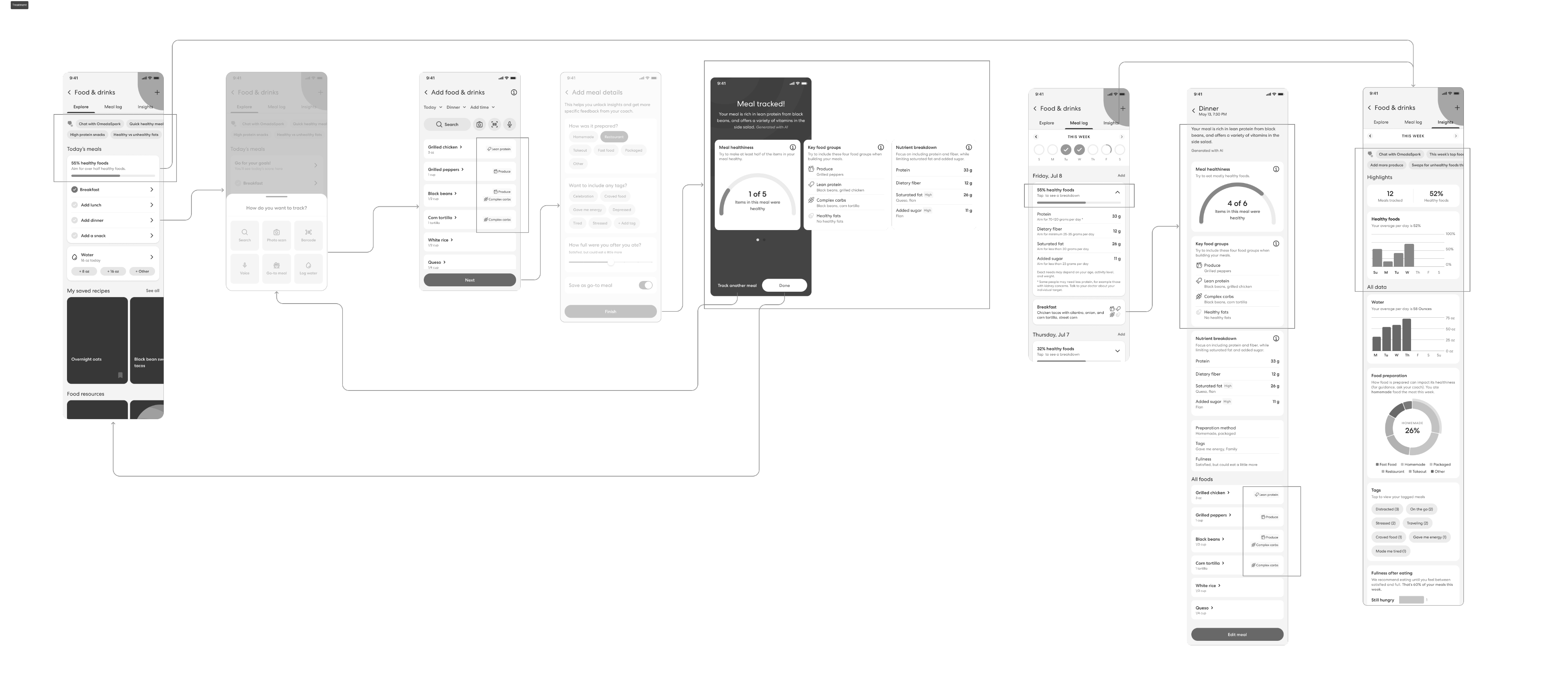 I restructured the feature from a multi-step sheet to page flow to avoid awkward UI stacking issues and make it easier to move between pages, and simplified the additional context questions we asked members to make it faster and easier to track a meal.