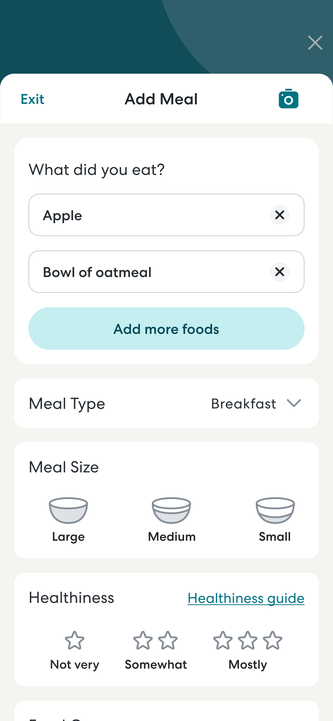 The feature gave no feedback on how healthy a user’s meals were and no feedback on how to improve. Most users tracked a couple meals, then abandoned the feature.